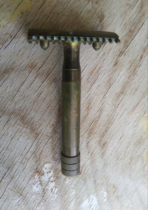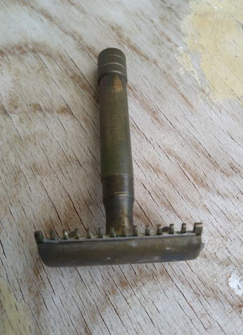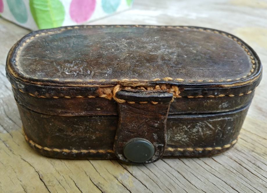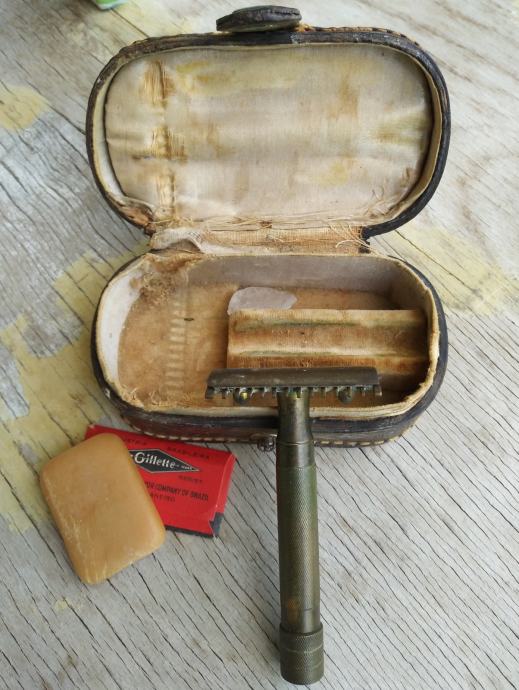 Vrlo stari brijač u kožnoj kutiji. Stanje kao na slikama. Nista nije dirano. Kako je zatečeno tako je i ostavljeno.