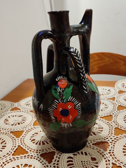 VTG Stara narodna umjetnost Lončarski vrč, dupli izljev, ručno rađen