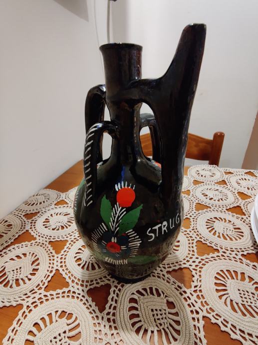 VTG Stara narodna umjetnost Lončarski vrč, dupli izljev, ručno izrađen, makedonski, visina 27 cm. Cijena 7 eura.