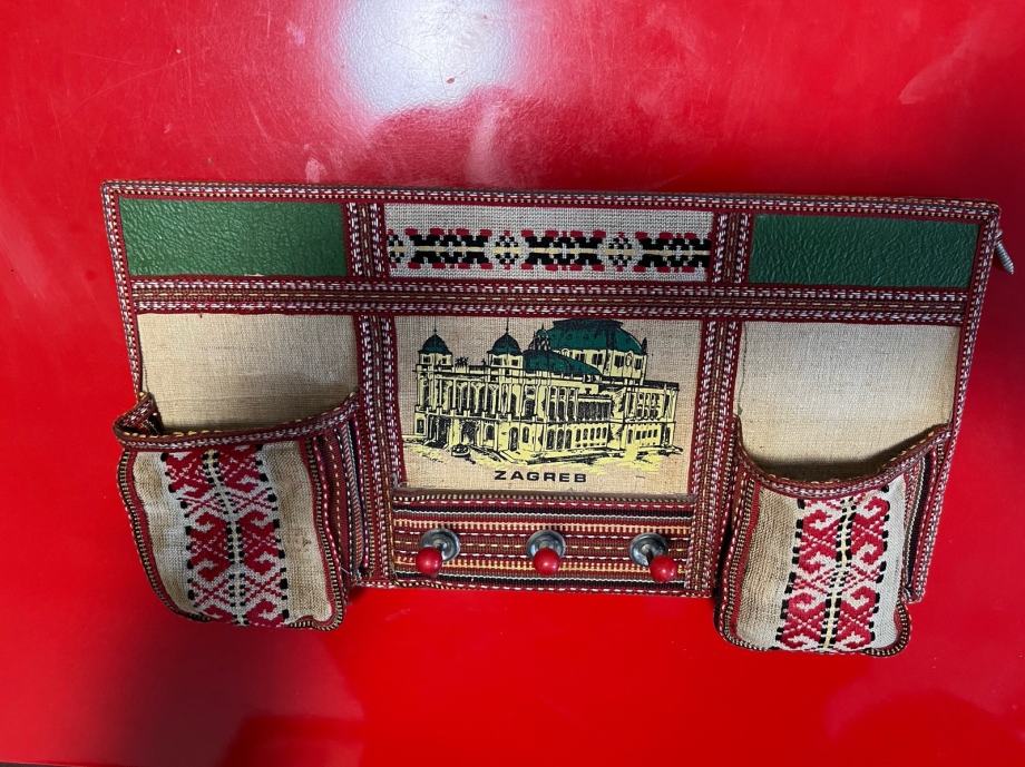 Stara vješalica rucni rad Zagreb , Hnk , sa 3 vješalice i dva đepića . Jako, jako staro .