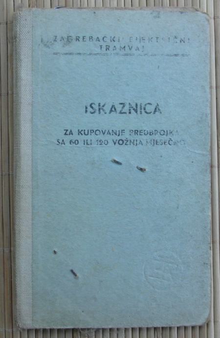 zagrebački električni tramvaj iskaznica za kupovanje predbrojka sa 60 ILI 120 vožnja mjsečno.