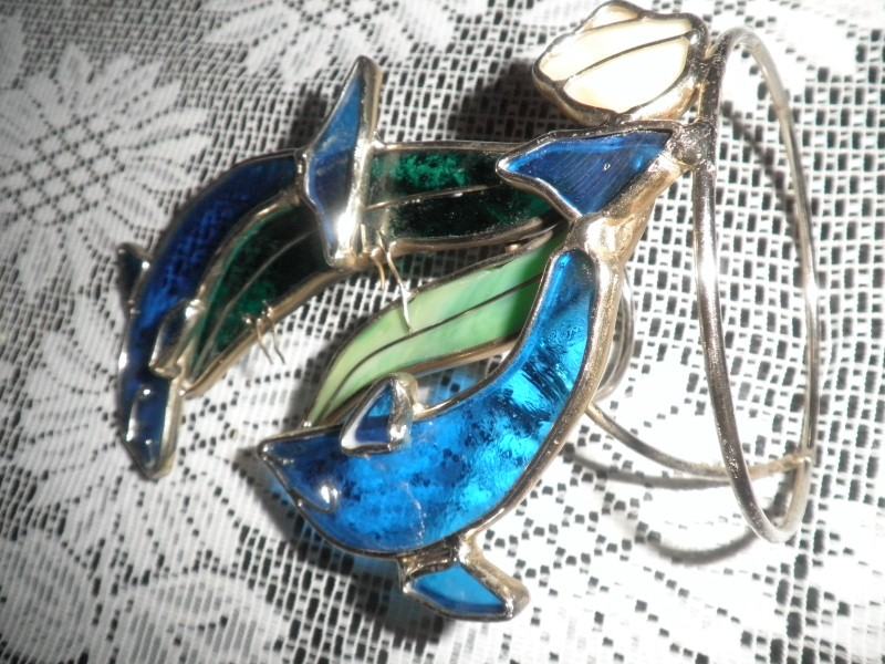 Zaigrani dupini, ručni rad sa staklom u boji i mesinganom žicom, nekad netko utrošio sate i sate teškog rada ....