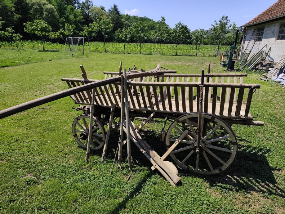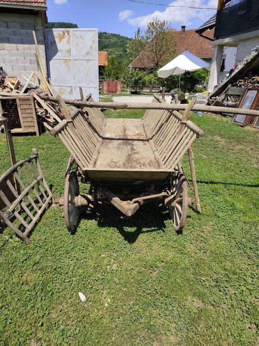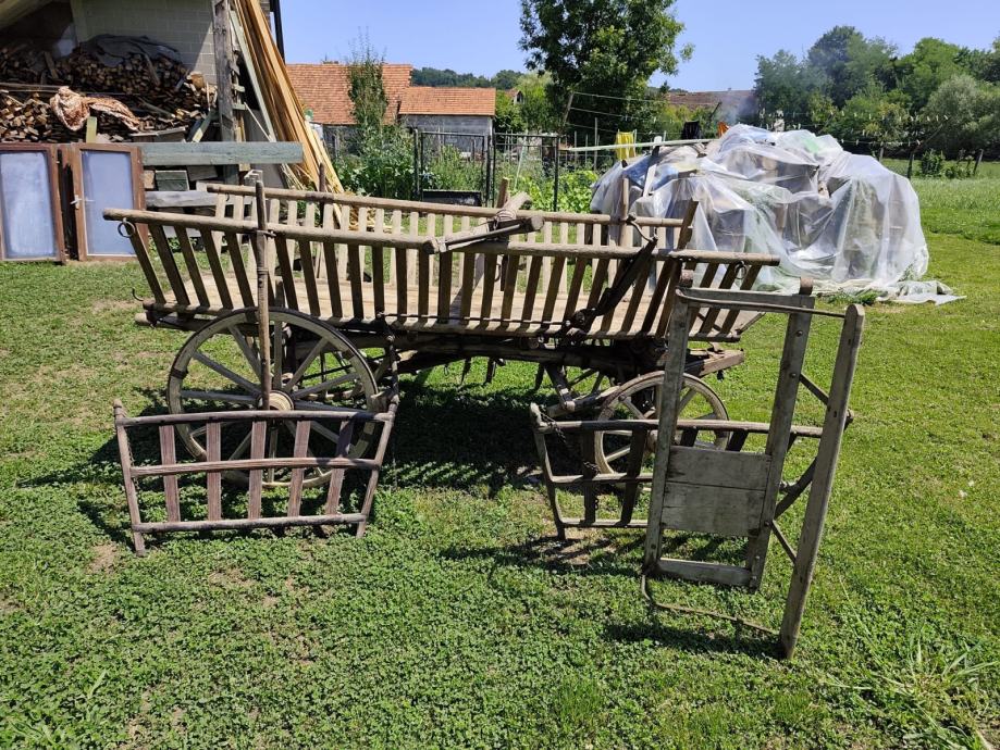 Prodajem zaprežna kola, ne znam točno godište proizvodnje ali je sigurno zadnjih 30 godina "garažirana" stoje u garaži.