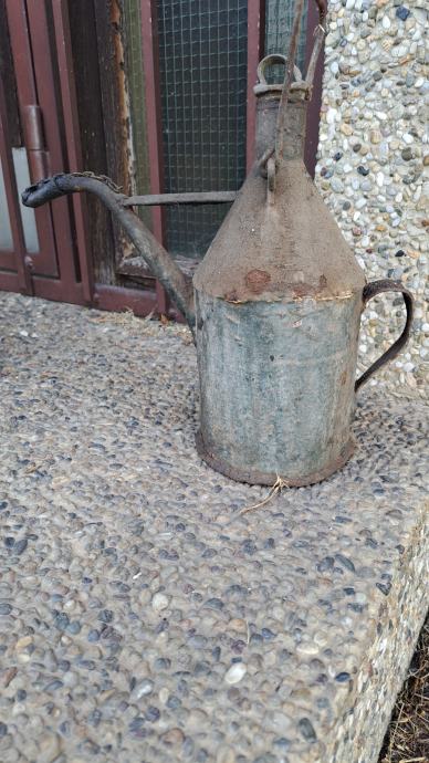 Prodajem željezničarsku posudu za ulje, kojim se podmazuju dijelovi lokomotiva i vagona. Stara je između 70 i 100 godina.