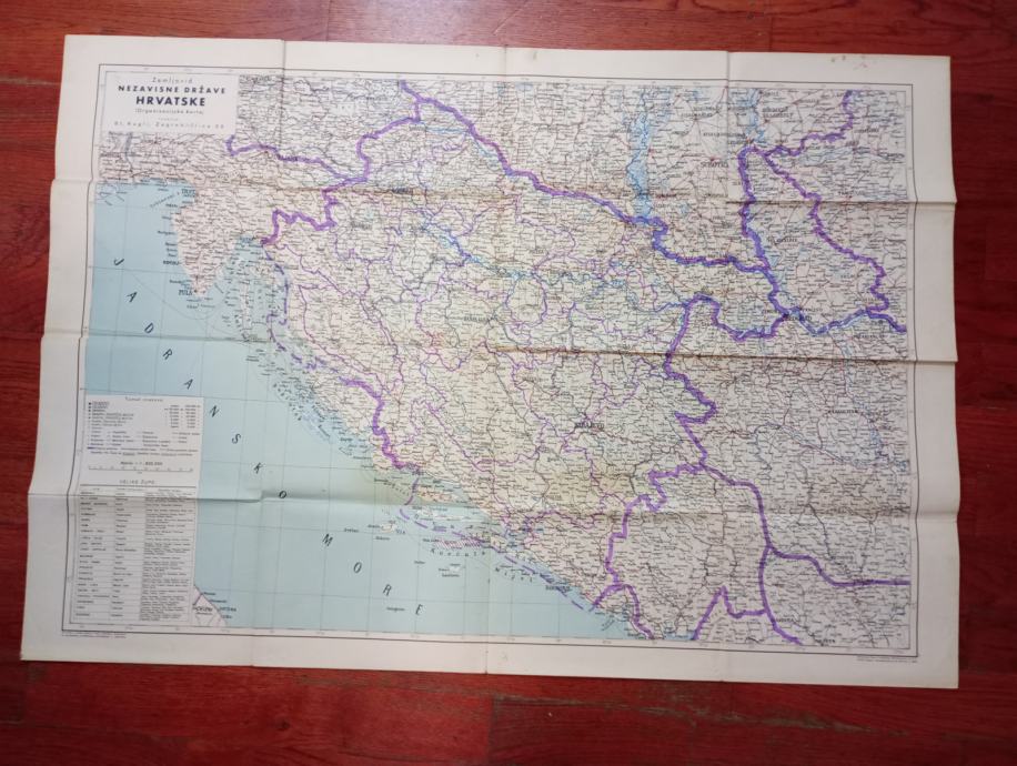 ZEMLJOVID HRVATSKA1942. - ORGANIZACIJSKA KARTA , MJERILO 1 : 800000