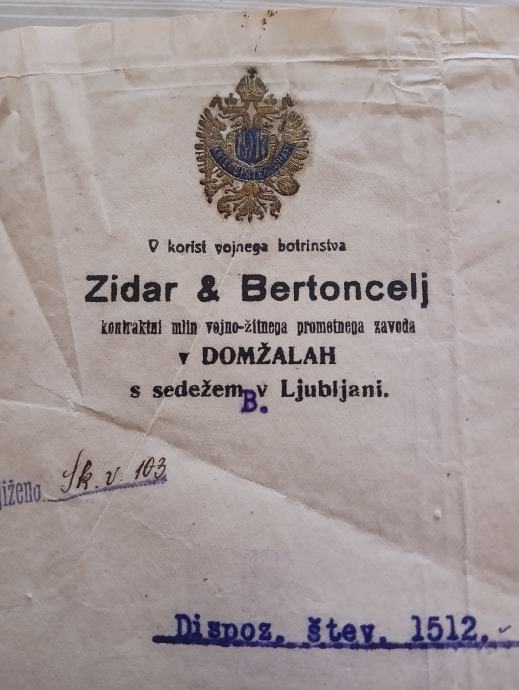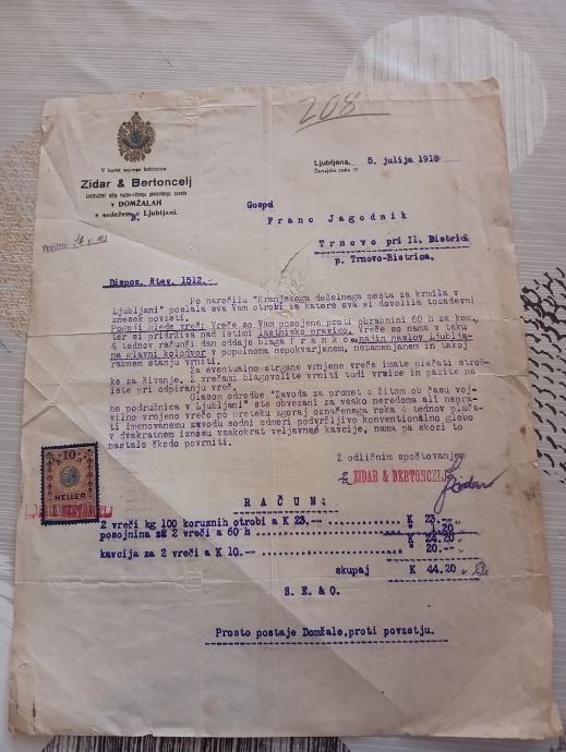 Prodajem staru fakturu Zidar & Bertoncelj, Ljubljana 1918g vidljivu na slikama. Plačanje na račun ili gotovina.
