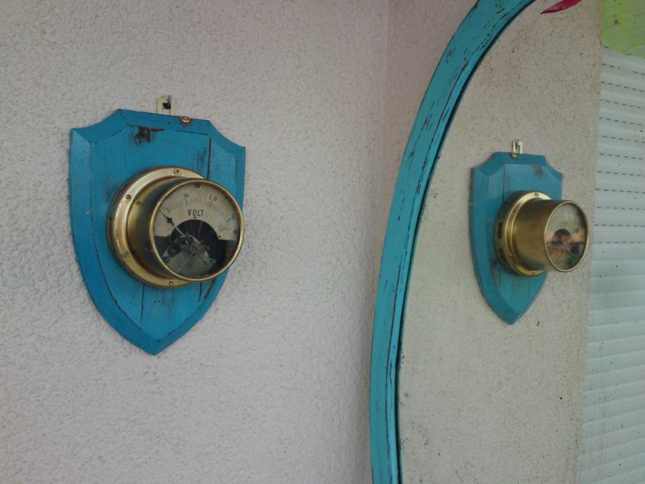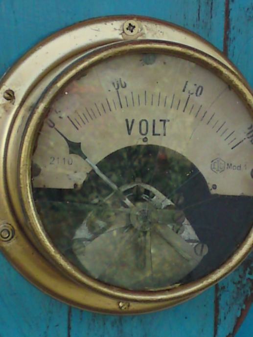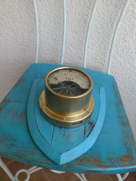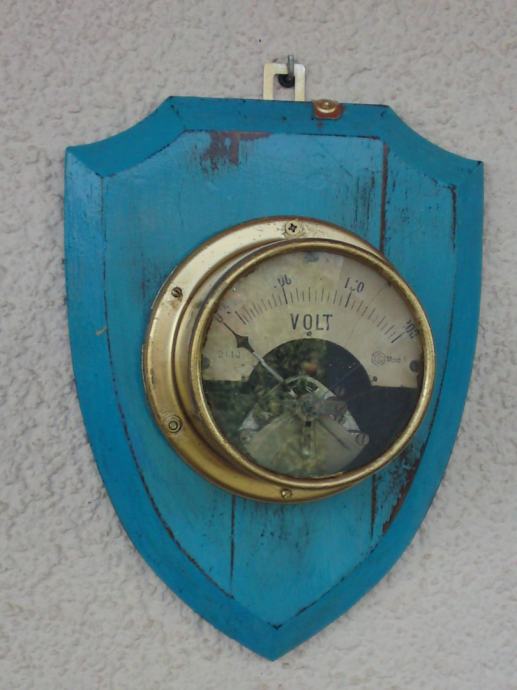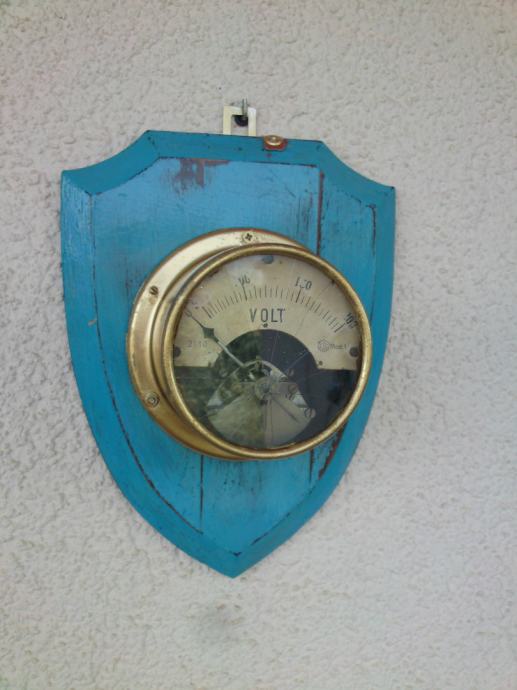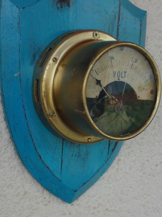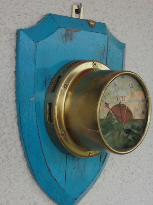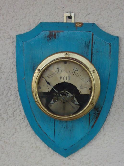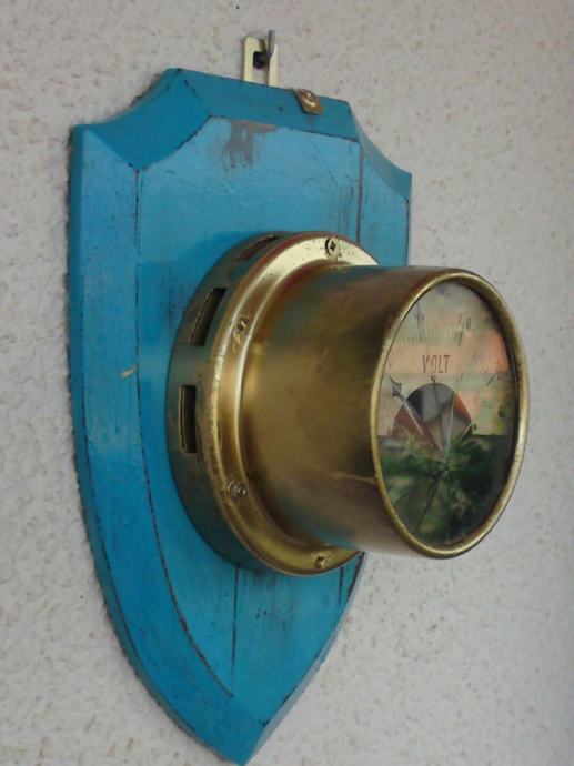 ZIDNA DEKORACIJA - STARI UREĐENI VOLT-METAR NA PLOČI - 30,5 x 23,0 cm