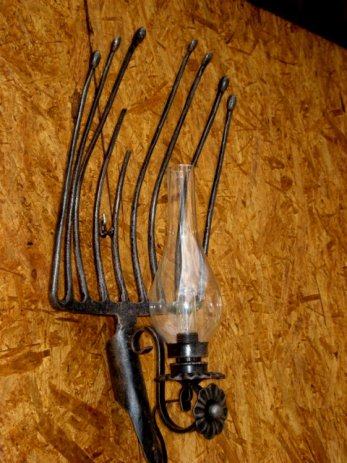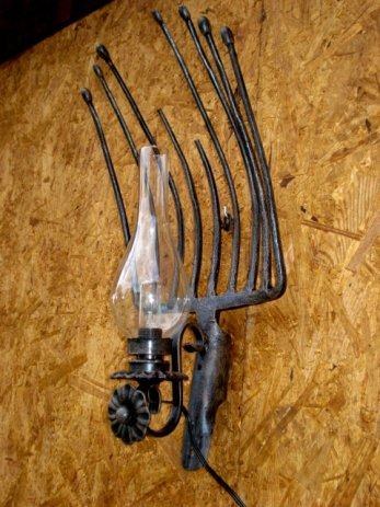 Unikatna zidna lampa izrađena od kovanog željeza i starih vila