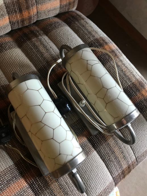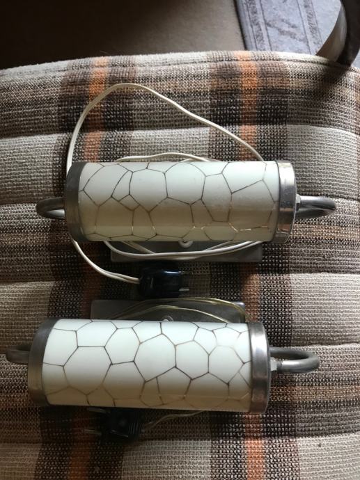 Par ispravnih retro zidnih lampi sa staklenim (neoštećenim) cilindrima s uzorkom.