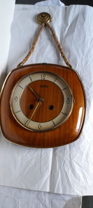 Zidni brodski sat sa ključem za navijanje. Sa jednim navijanjem radi 8 dana!Sat je ispravan i očuvan, zvoni svakih pola sata jednom i na puni sat koliko je sati.