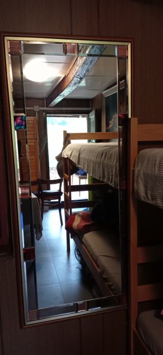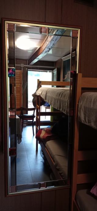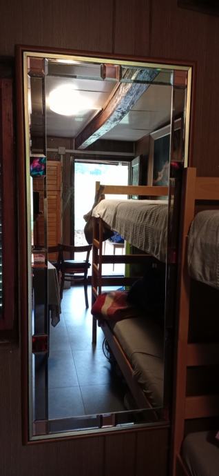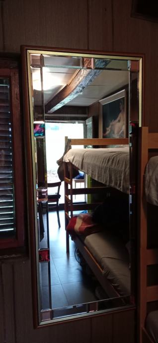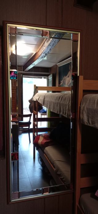 Ogledalo sa drvenim okvirom i brušenim detaljima,