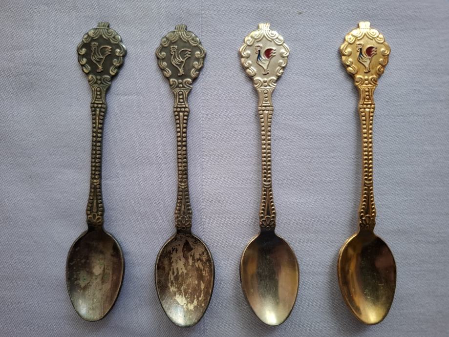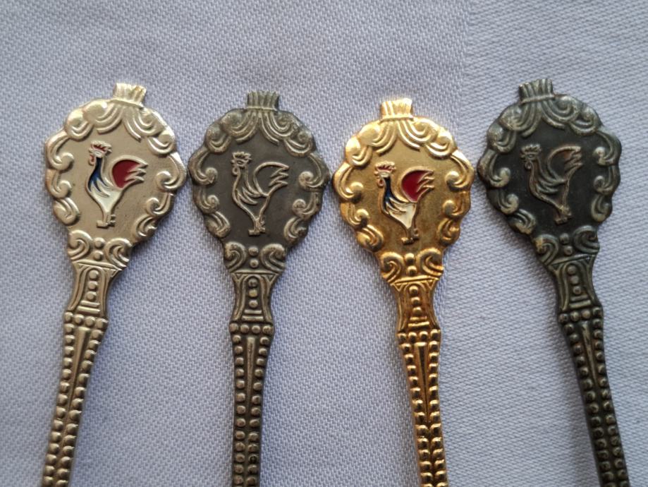 Pjetao na dvije (nikal i zlatne boje) emajliran.
