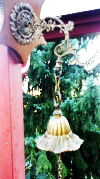 staro zvono od mesinga na drvenom nosaču za pričvrstiti na zid. jako dobar zvuk