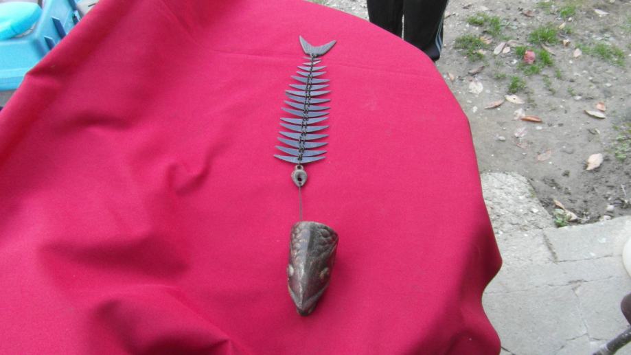 Glava od bronce , tijelo od metala, mislim željeza. Ukupna dužina 50 cm.