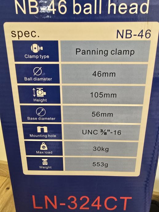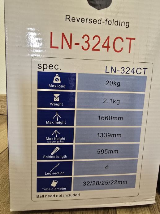Nosivost stativa Leofoto LN-324CT je 20 kg, dok je njegova vlastita težina 2,84 kg, uključujući i kuglastu glavu.