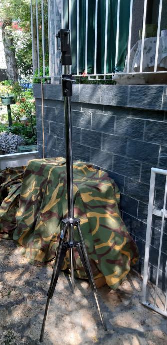 STATIV JE OZBILJAN PROFESIONALNI METALNI ČVRST KORISTE GA TV KUČE ZA RASVJETU KAMERE I OSTALE NAMJENE DUŽINA KAD SE RAZVUČE JE 2,5 METRA A JASNO POSTOJI REGULACIJE VISINE