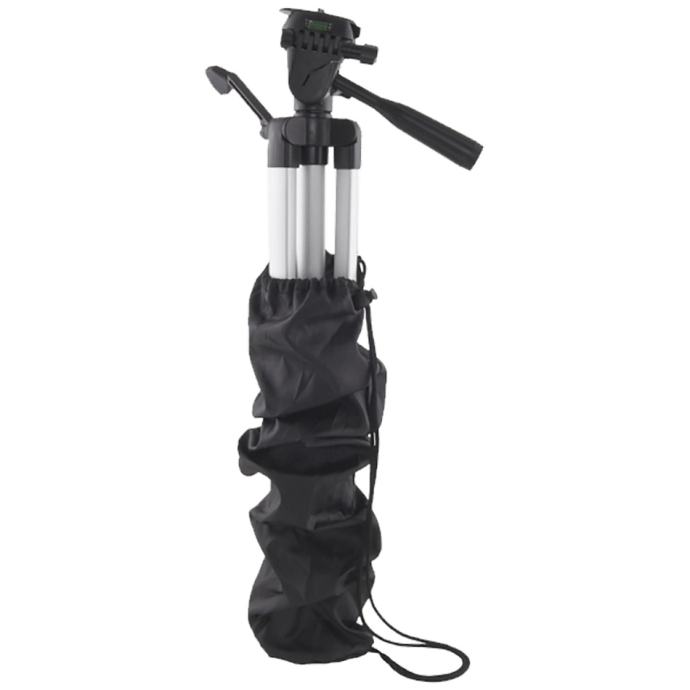 Stativ sa stupcem za izbacivanje. Dizajniran za fotoaparate, video kamere, laserske mjerne uređaje, daljinomjere itd. Lagani, male veličine i robusna torbica omogućuje vam da ga ponesete sa sobom i koristite na poslu i kod kuće. Prikladne noge koje se uvlače i nosači omogućuju vam brzo postavljanje stativa na željenu visinu.Pomjeranje glave u 3 smjera, 3 aluminijske noge sa gumiranim vrhom, uklonjiva pločica za brzo otpuštanje, brzo zaključavanje ručice, max. visina 1350 mm, min. visina 500 mm, max. nosivosti 5 kg, težina stativa 800 g