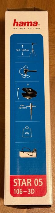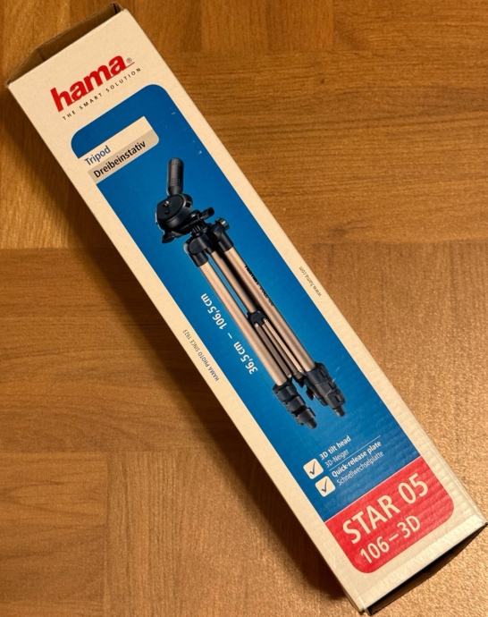 Prodajem potpuno novi tripod Hama Star-05 za fotoaparate s podesivom visinom od 36,5 do 106,5 cm.
