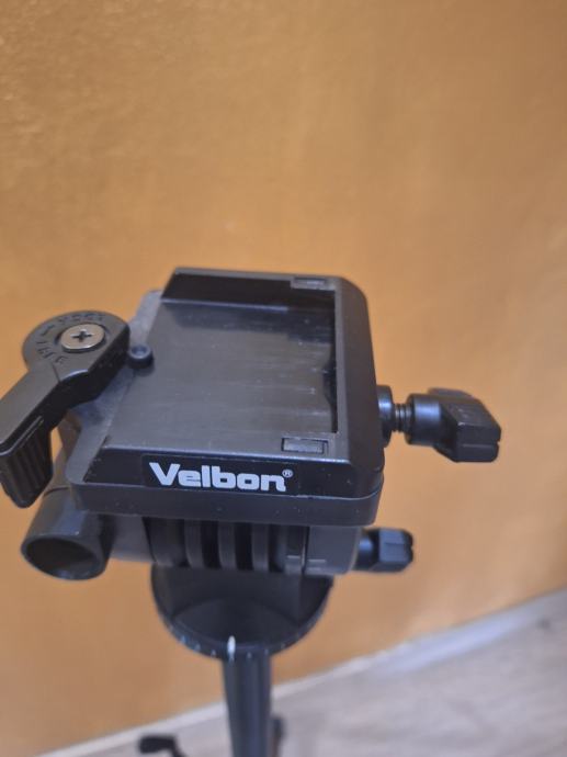 Glava: Velbon PH-358 "Vel-flo 7" Mini-Pro fluidna glava. Omogućuje glatko horizontalno (pan) i vertikalno (tilt) kretanje, što je ključno za profesionalne video snimke.