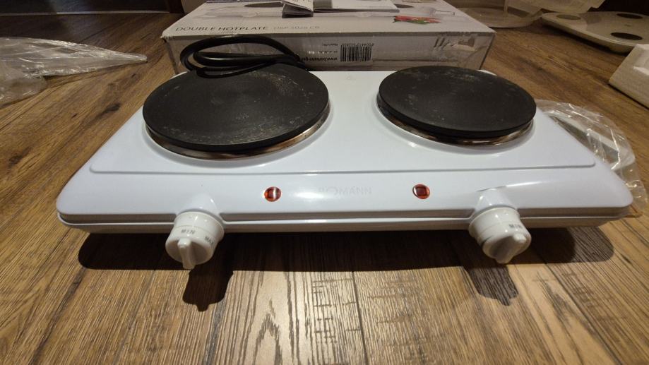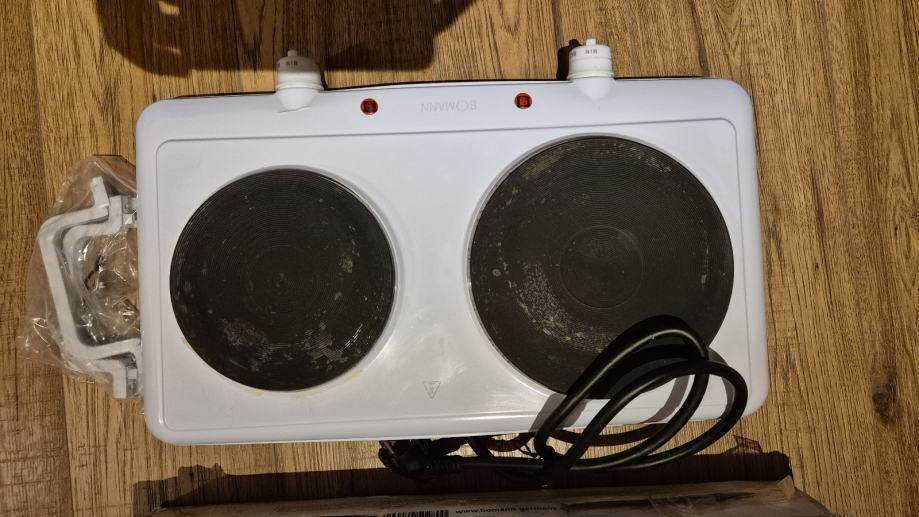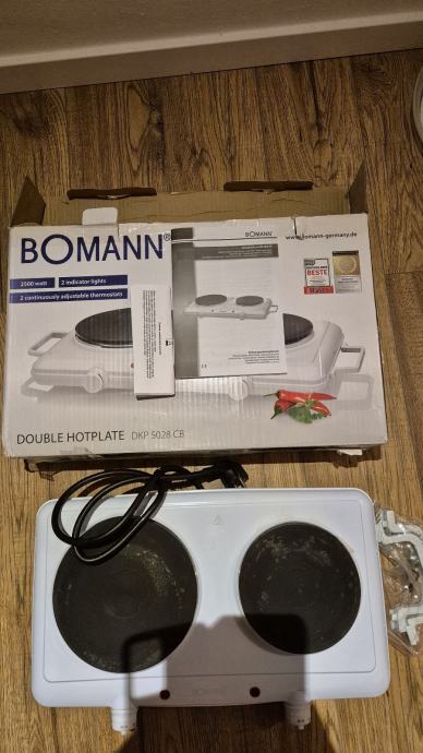 Prodaje se prijenosna električna ploča za kuhanje marke Bomann. Ploča posjeduje dva zasebna ringa koji se podešavaju zasebno.