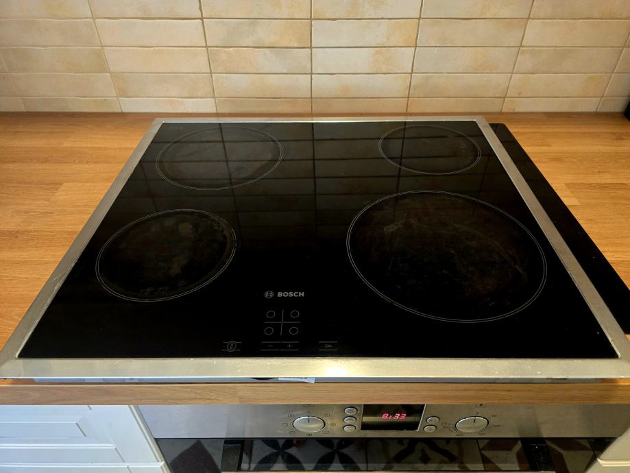 Rabljena, u odličnoj funkciji. Bosch keramička električna ugradbena ploča. Zamijenjena indukcijskom. Prodajem. Model PKE645D17E, dimenzije 48x583x513 mm.