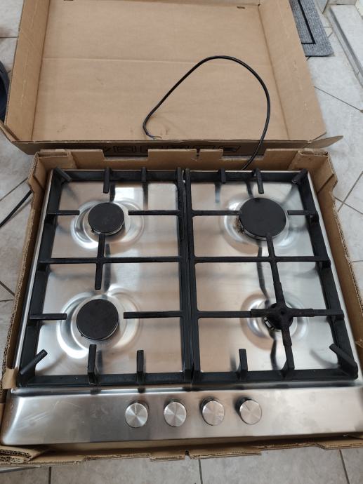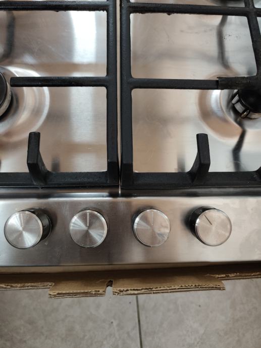Prodajem rabljenu Bosch plinsku ploču za kuhanje sa četiri plamenika i elegantnim metalnim kontrolnim gumbima. Uređaj je u dobrom stanju s kvalitetnim inox površinama i robusnom konstrukcijom.