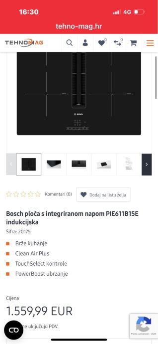 Bosh indukcijska ploča za kuhanje s integriranom napom koristena samo nekoliko puta , skoro nova .