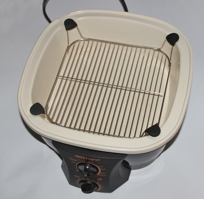Ima dodatak - mrežu za prženje hrane i rešetku za kuhanje na pari.