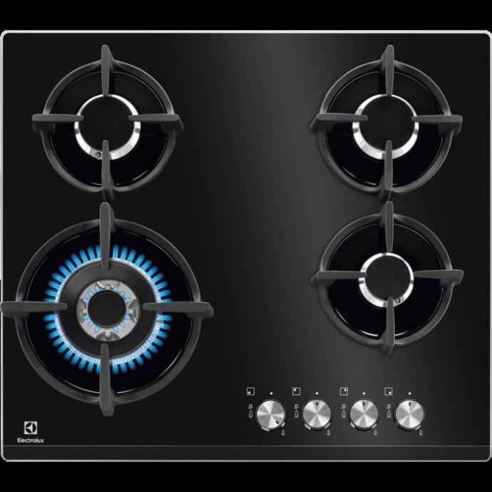 Ugradbena ploča Electrolux KGG6437K ima plinske plamenike na staklokeramici.