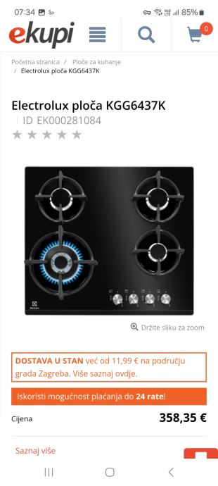 Nova ugradbena plinska ploča Electrolux KGG6437K ; kupljena za tavrenu i nikada otpakirana (izvađena iz paketa samo za slikanje), jer je taverna tek pred par mjeseci napokon dovršena, a sada je ugrađena indukcijska ploča.