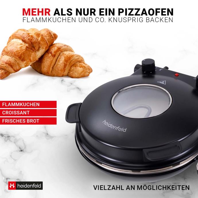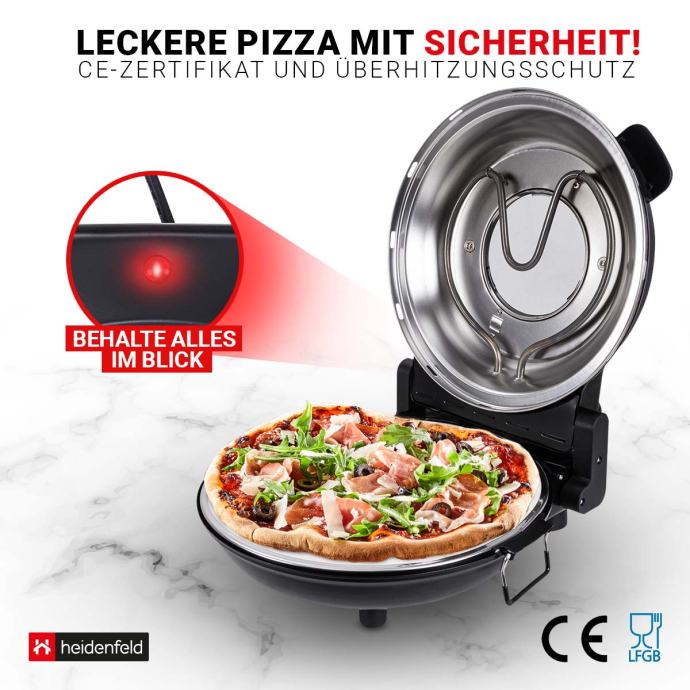 Moderan dizajn u crnoj ili crvenoj savršeno će se uklopiti u vašu kuhinju. Praktičan detalj: prozor za gledanje na vrhu pećnice za pizzu. Pogledajte kako se vaša pizza peče - bez nepotrebnog gubitka topline otvaranjem pećnice za pizzu.