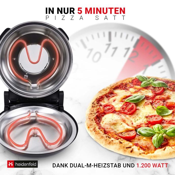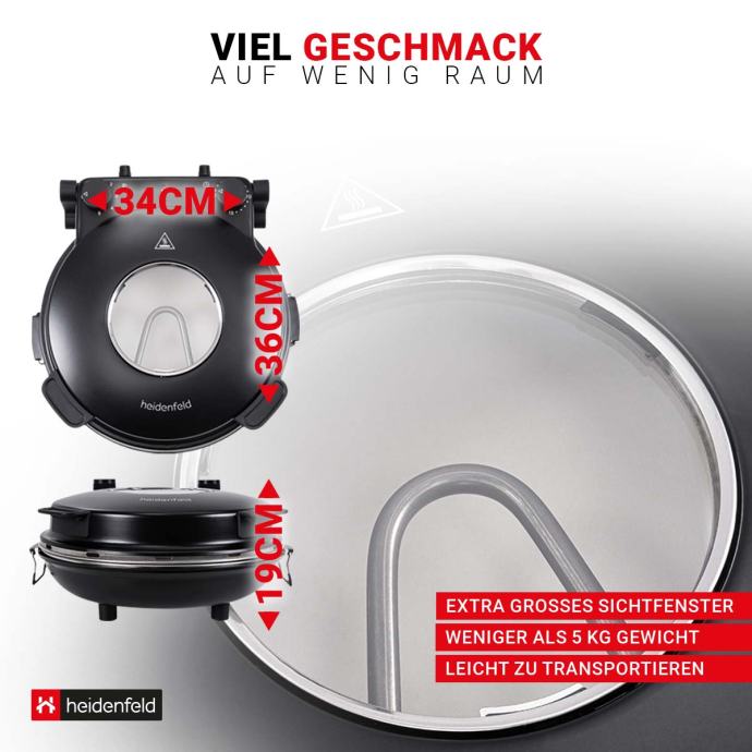 Napoli pećnica za pizzu donosi hrskavu pizzu ravno na vaš kuhinjski stol. Postiže rezultate svojim kompaktnim dimenzijama od 36 cm x 35 cm x 19 cm i malom težinom od manje od 5 kg. Tako da se može lako premjestiti iz A u B. Ili što mislite o ugodnoj večeri uz pizzu s prijateljima? Ovu mobilnu peć za pizzu možete jednostavno ponijeti sa sobom.