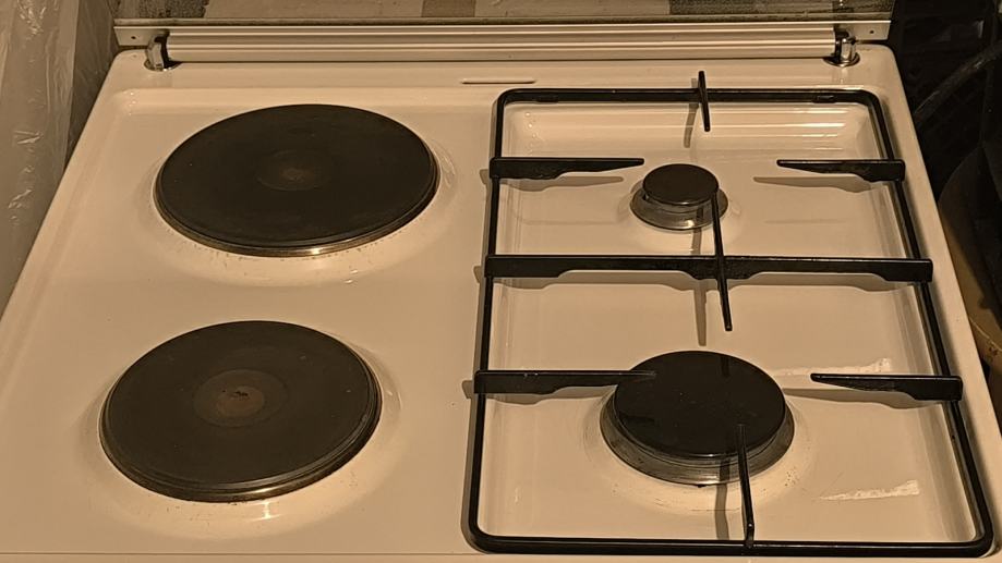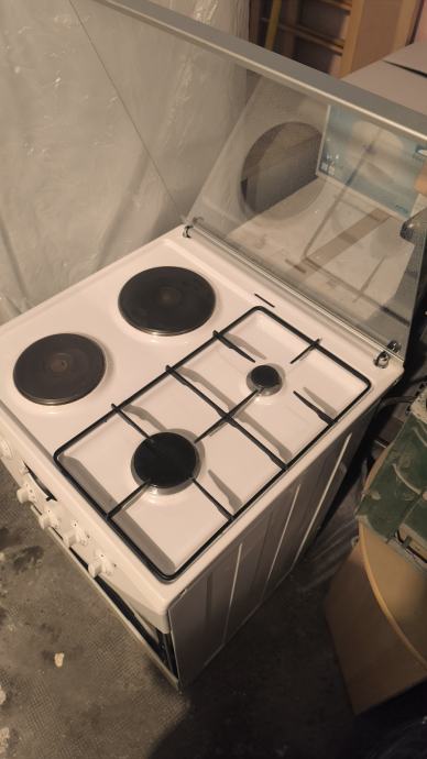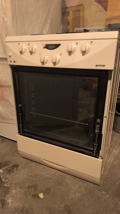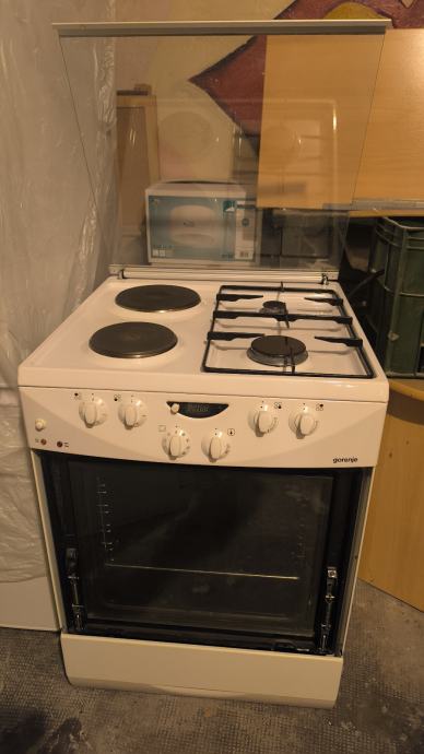 Gorenje štednjak, 2 plin, 2 struja, bez vanjskog stakla pećnice, pećnica sa ventilatorom, ispravno radi kao i gornje ploče, dizne su za plinsku bocu, dajem i za gradski plin.