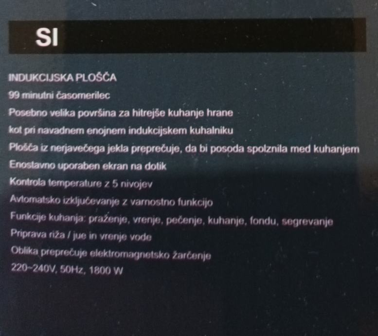 Prodajem novu zapakiranu indukcijsku ploču snage 1800W i promjera ploče za kuhanje 25 cm.