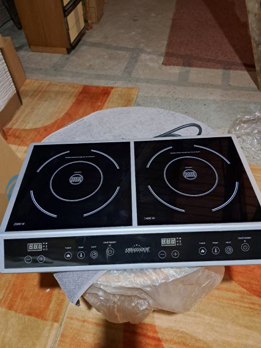 Prodajem prenosni indukcioni aparat tip A 2006 za kuhanje sa dvije ploce.Dvije ploče indukcijske serija ekskluzivnom Ambassador Profiline®. Elektronička temperatura, vrijeme i selektor snage. Veliki digitalni timer. Uzbunjivanja za ne-kompatibilnim pribora. Automatsko isključenje. Posebna crna stakla otporan na ogrebotine površine. Anti-vibracijski i anti-slip sustav.