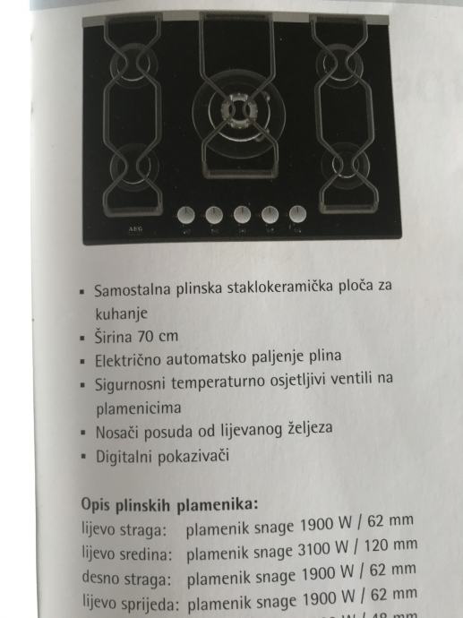Nova keramička ploča sa 5 plamenika, peti je ovalni veliki, neraspakiran , može se pogledati. AEG ELECTROLUX, dimenzije 51 x 68 cm