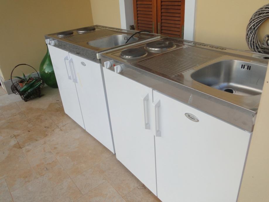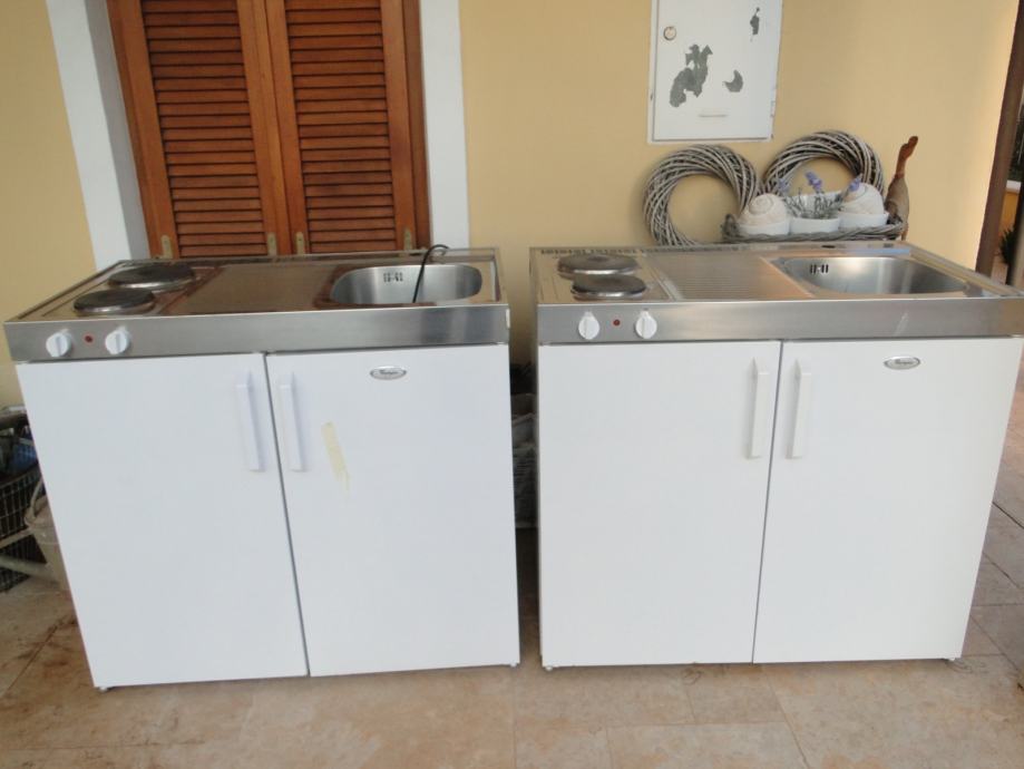 Prodajem u dobrom stanju dvije mini kuhinje , ima dvije ploce na struju , hladnjak i sudoper. Koristeni su 5 godina u apartmanu ko novi.