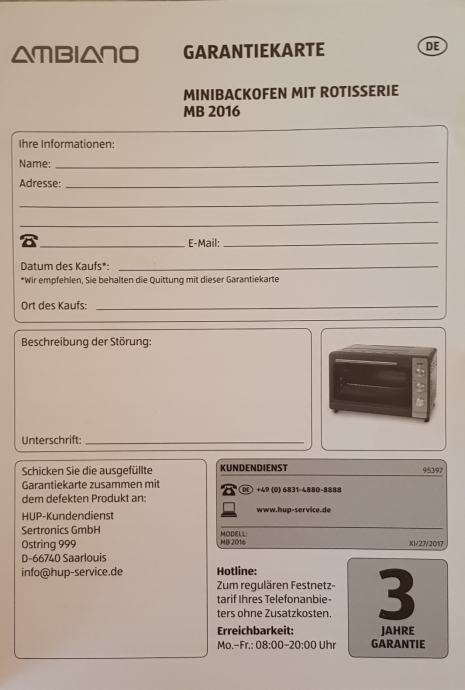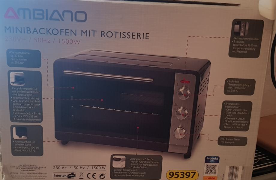 Opseg opskrbe: mini pećnica Ambiano, upute i pribor