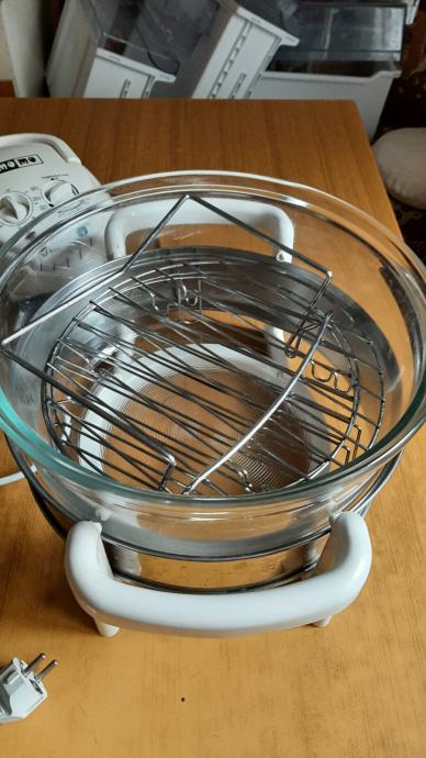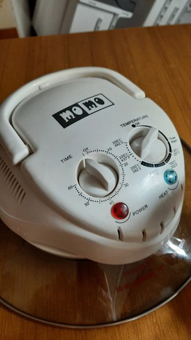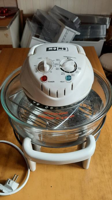 Prodajem rabljenu konvekcijsku pećnicu Momo CKF-5D, 220V-240V, 50 Hz, 1300W. Korištena je jedan kraći period, od onda nije u upotrebi. Izvrsna za pripremu zdrave hrane bez dodataka masnoće. Posuda od vatrostalnog stakla, elektronska kontrola i zaštitni prekidač, štedi struju do 30% u odnosu na obične pećnice, nema "dima", služi kao zamjena za standardnu peć, grill, kuhalo, toster, električni roštilj itd.; temperatura 65-250C, kapacitet 11 litara.