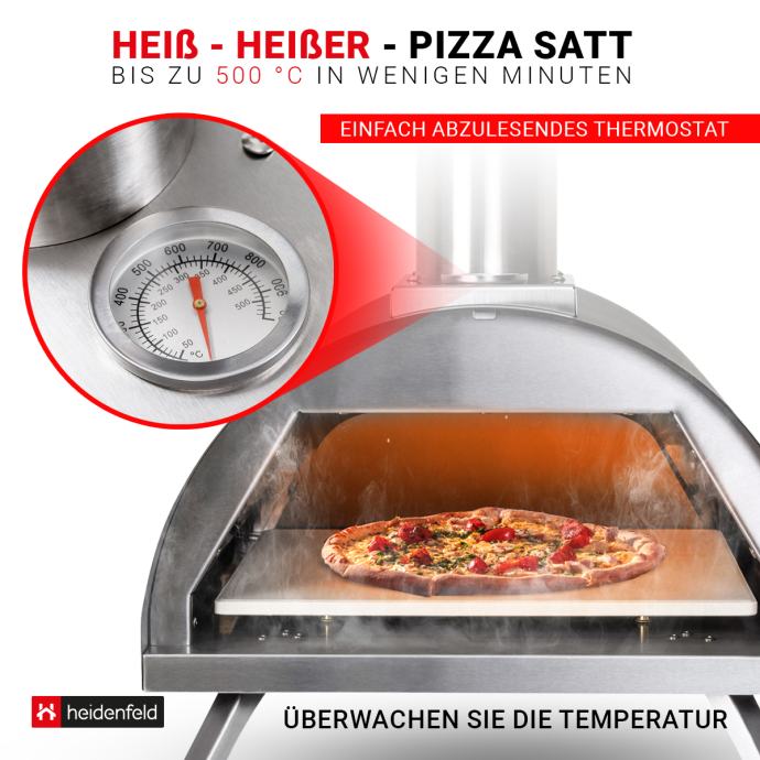 Cijenite li miris dima iz peći na drva? Ili uživati u nekompliciranom roštiljanju s plinskom pećnicom? Uz Heidenfeld pećnicu za pizzu Naples imate oboje! Odaberite pećnicu za pizzu na pelete ili ostvarite maksimalnu fleksibilnost kod kuće s hibridnom pećnicom za pizzu. Obje varijante impresioniraju kvalitetnom izradom i funkcionalnim detaljima. Kućište od nehrđajućeg čelika ne samo da je posebno higijensko i lako se čisti, već osigurava i optimalnu toplinsku izolaciju. Bez obzira loži li se peć za pizzu na plin ili na pelete - ona se u samo nekoliko minuta zagrije do 500 °C. Tako nastaje pizza s hrskavom podlogom i sočnim preljevom. Bilo da su to blage ljetne večeri ili ugodne zimske noći - vanjska peć za pizzu pruža vam sate druženja s prijateljima i obitelji. Uživajte zajedno u pizzi kao iz vaše omiljene talijanske!