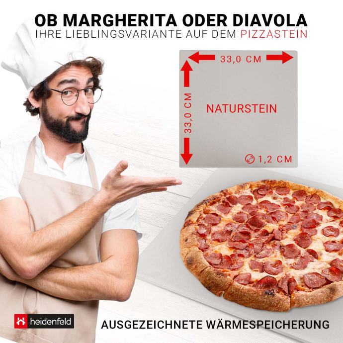Uz pećnicu za pizzu Heidenfeld Naples možete jednostavno pripremiti talijansko nacionalno jelo. Uz pomoć visokokvalitetnih drvenih ručki , možete otvoriti utor bez opeklina prstiju. S veličinom od 40 cm x 20,5 cm nudi dovoljno prostora: kamen za pizzu može se lako ugurati unutra i van.