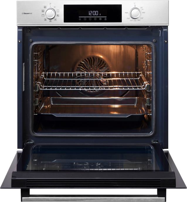 Čišćenje pećnice paromPećnica se čisti parom. Da biste to učinili, u komoru za kuhanje dodaje se voda, odabire odgovarajući program čišćenja i nastala para se distribuira po unutrašnjosti. Zatim uklonite ostatke vlažnom krpom.