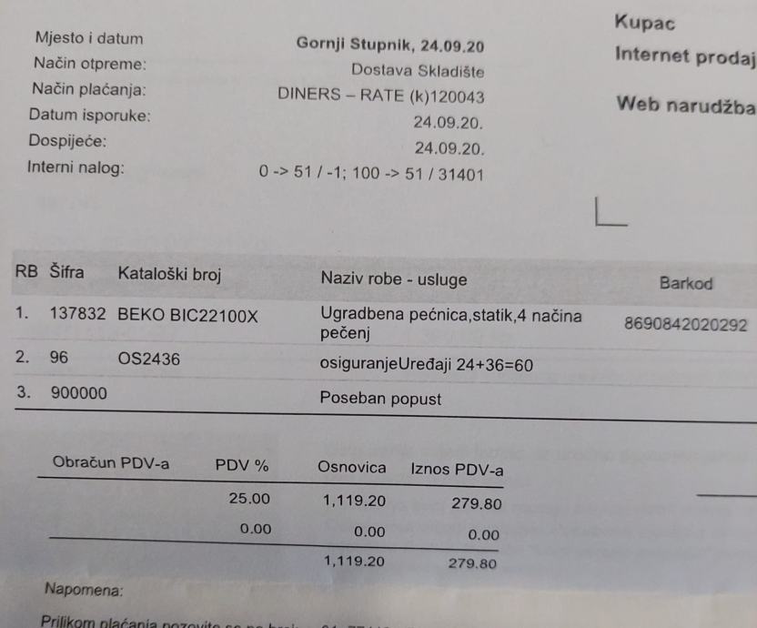 Pećnica je rabljena, ali ispravna ( potrebno bi bilo staviti novu gumu na vrata.