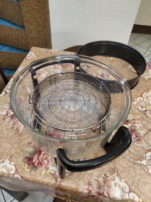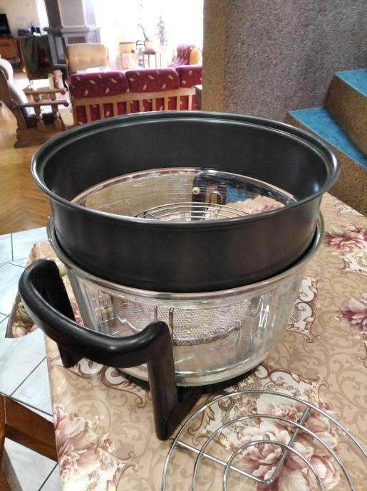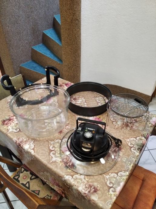 Pečenje ribe , mesa i krumpira zajedno jer ne prima mirise i ne oslobađa u prostor . Plus dodaci za razne namjene upotrebe . Pranje kao kuhanje + deterdžent max.pola posude dobro je koristiti metalni nastavak.Posuda je oko10l.
