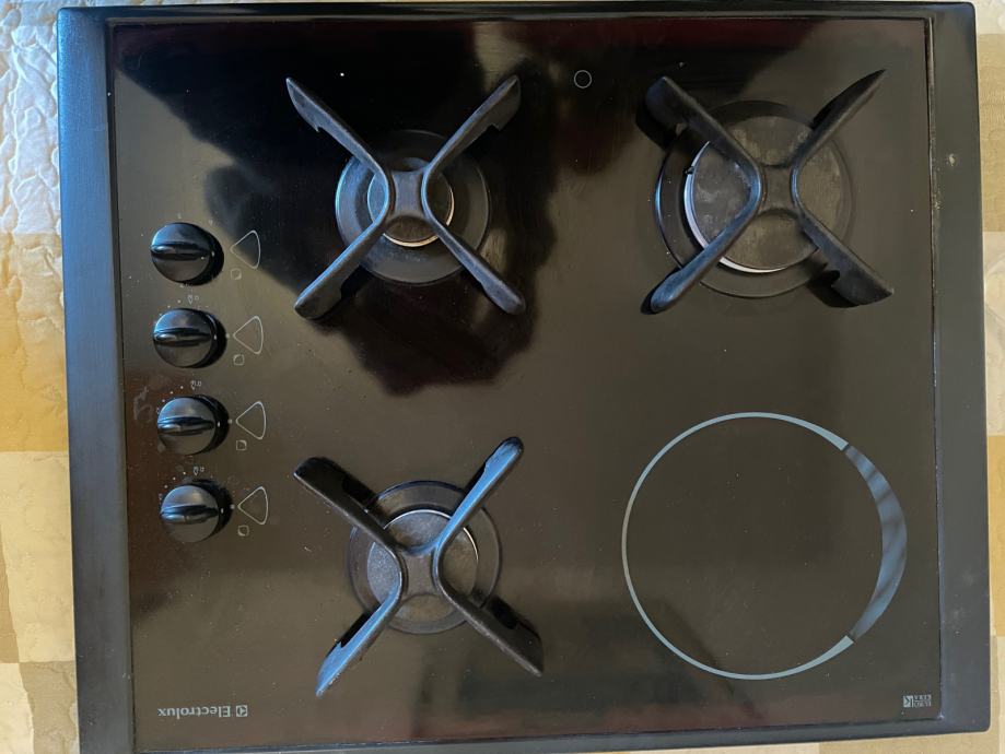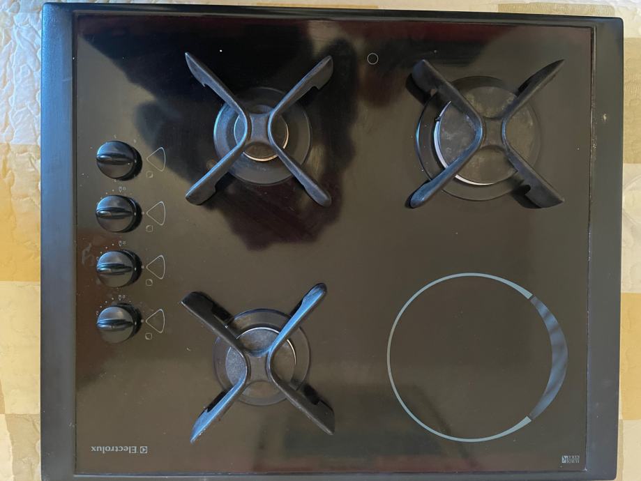 Ocuvana placa za kuhanje 3 ringa za plin (zemni) i jedna struja. Dole staklokeramika, ocuvana, bez ostecenja.