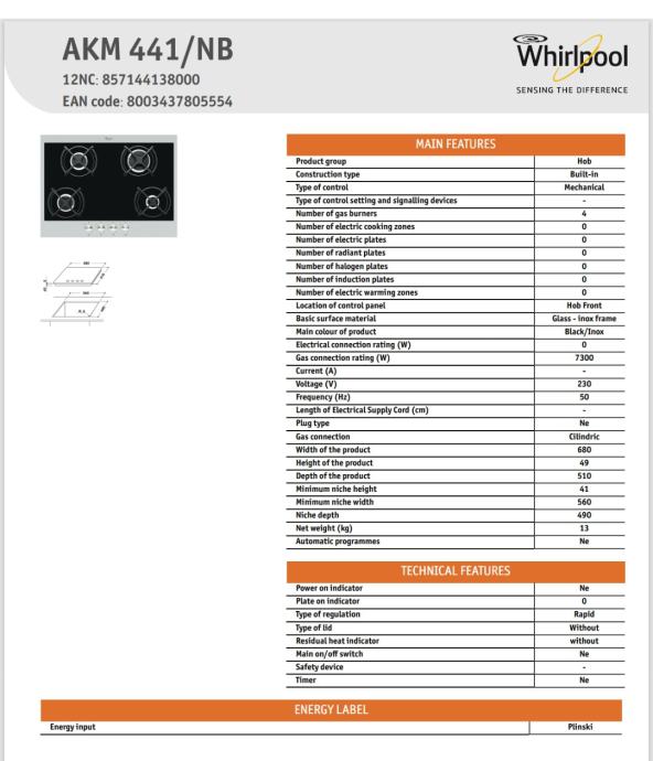 Prodajem plinsku ploču za kuhanje Whirlpool, model AKM 441/NB.