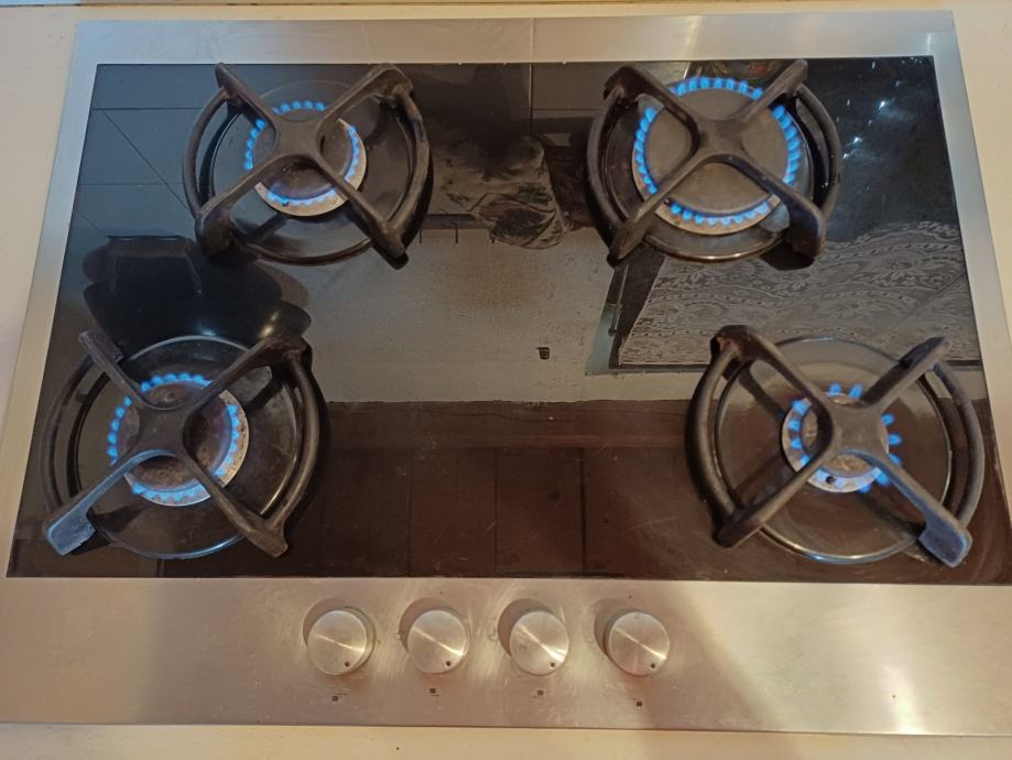 Ploča je staklokeramička s inox rubom, sa 4 plamenika opremljenima diznama za bocu. Za korištenje na zemnom plinu dizne je potrebno zamijeniti.