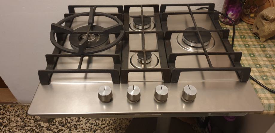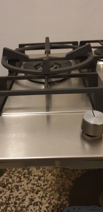 Na prodaju je ugradbena plinska ploča Samsung sa četiri plamenika i nosačem voka. Korištena, ali dobro održavana i odlično uščuvana.