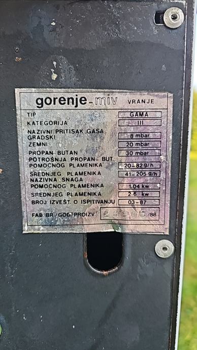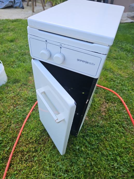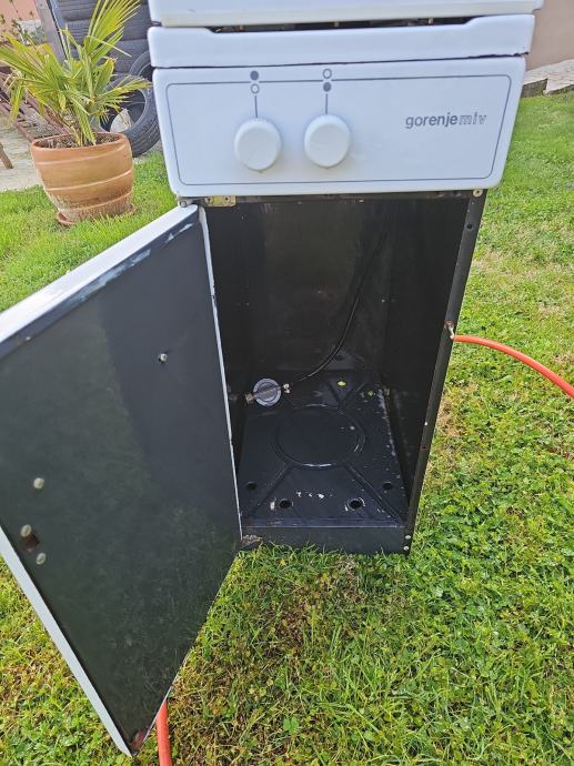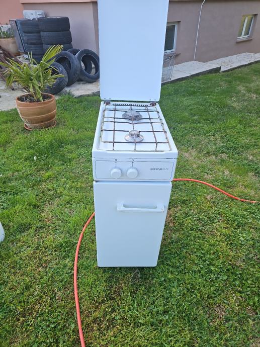 Prodajem rabljeni plinski štednjak Gorenje bijele boje. Radi se o kompaktnom modelu s dvije plinske ploče za kuhanje i vratima u donjem dijelu. Upravljanje se vrši putem dva okretna gumba. Pogodan za manji prostor zahvaljujući uskim gabaritima.