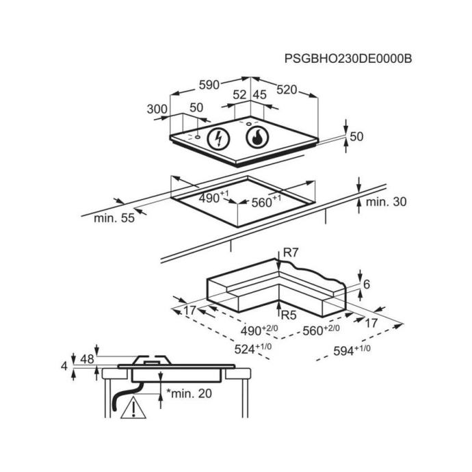 Dimenzije za ugradnju VxŠxD, mm: x560x490